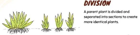 A parent plant is divided and separated into sections to create more identical plants.