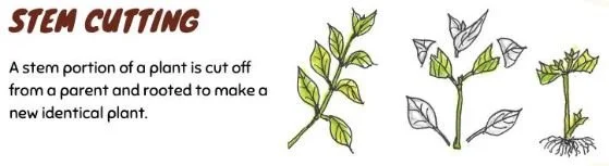 A stem portion of a plant is cut off from a parent and rooted to make a new identical plant.